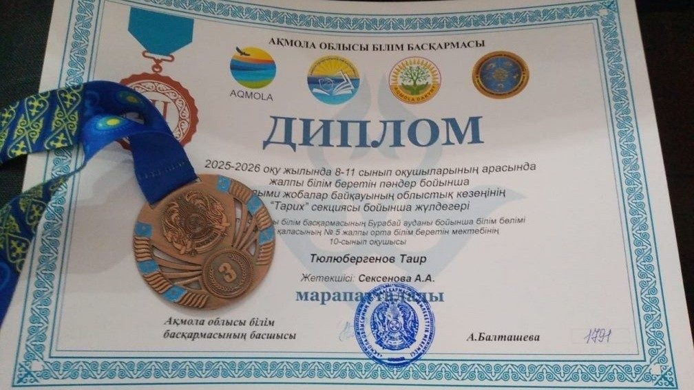 4 қарашада Көкшетау қаласында облыстық, ғылыми-практикалық конференция өтті. Біздің мектептің оқушысы Тюблюбергенов Таир өзінің ғылыми жобасын абыроймен ұсынып, 3 орынға ие болды. Таир мен оның жетекшісі А. А. Сексенованы жүлделі орынмен құттықтаймыз. Біз мұнымен тоқтап қалмай тек алға ұмтылуды тілейміз.