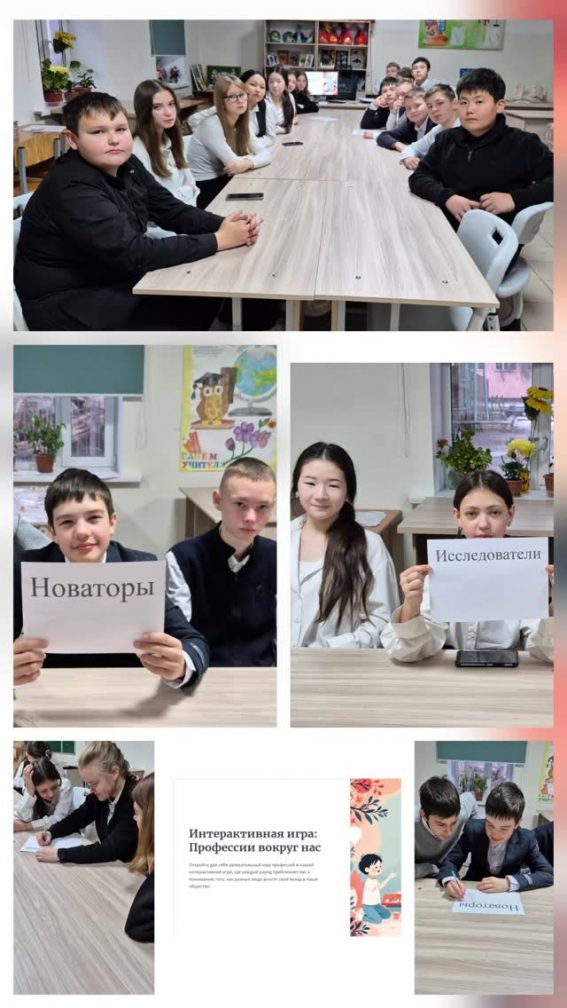 17 қарашада 8-сынып оқушылары үшін кәсіптік бағдар беру жұмысының жоспары аясында "айналамыздағы мамандықтар" интерактивті зияткерлік ойыны өткізілді.