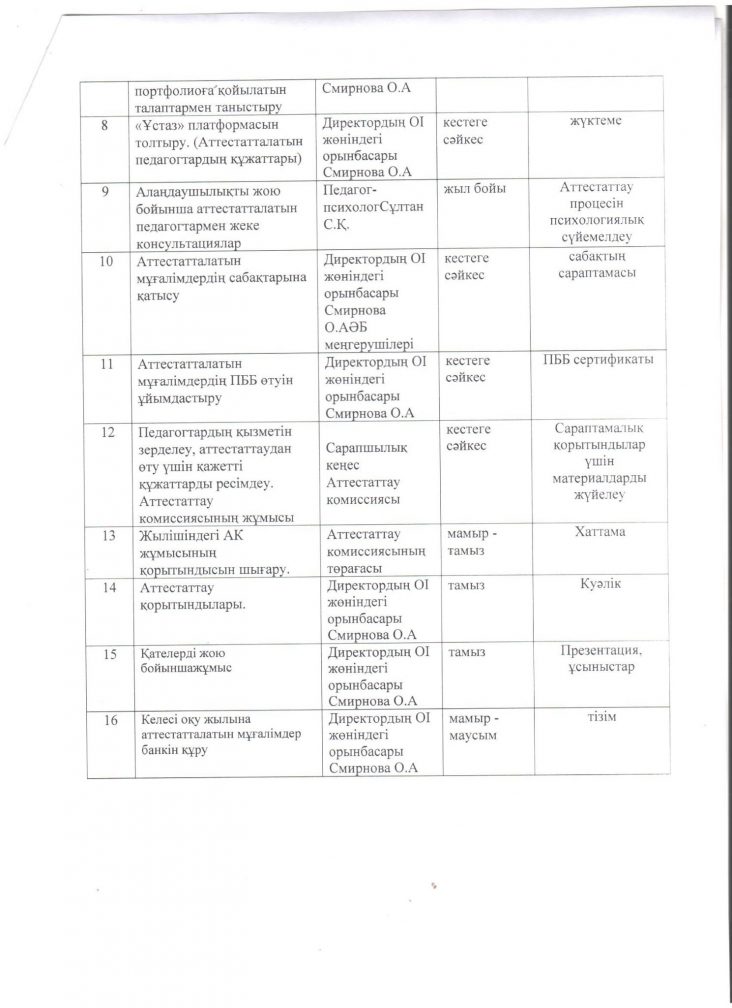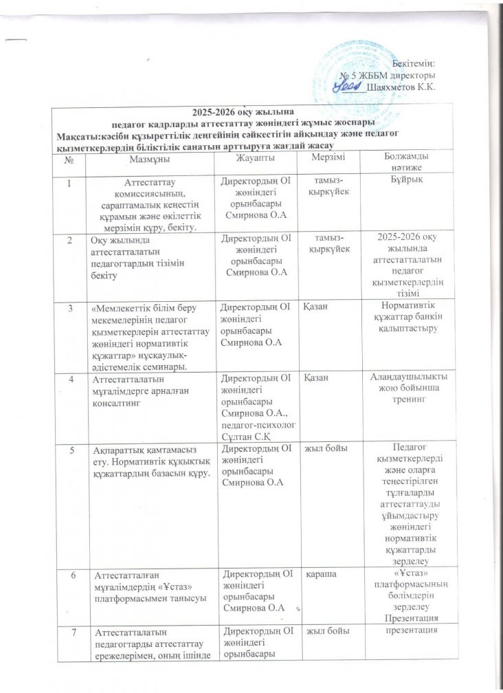 2025-2026 оқу жылына педагог кадрларды аттестатау жөніндегі жұмыс жоспары