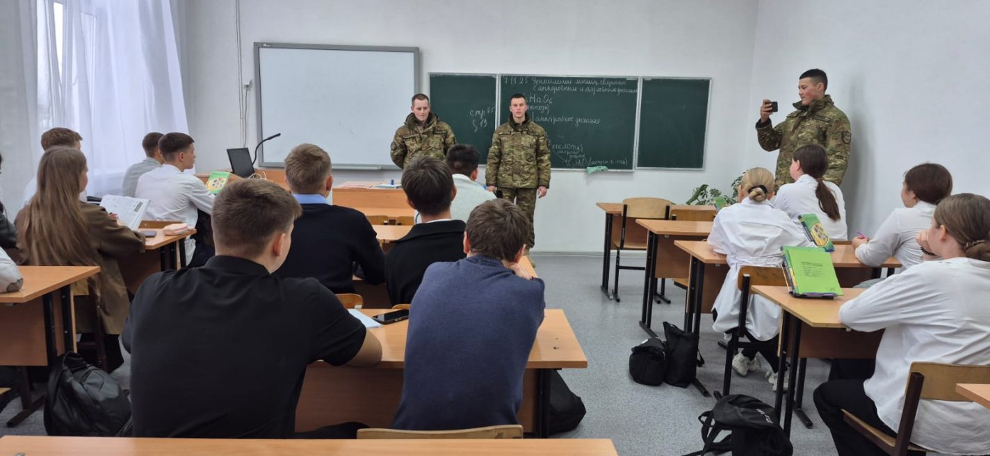 7 қарашада біздің мектепке Шоқан Уәлиханов атындағы Қазақстан Республикасы Қорғаныс Министрлігі Әскери колледжінің мерзімді қызмет сарбаздары келді. Біздің қонақтарымыз-Лизанец Роман, Кабашкин Руслан және Қайыргелді Фархат-9-сынып оқушыларымен кәсіби бағдар беру кездесуін өткізді. Балаларға: колледж базасында мерзімді әскери қызмет өткеру мүмкіндігі туралы; әскери колледжге түсу шарттары туралы; ҚР Қарулы Күштері қатарында оқу және қызмет ету перспективалары туралы айтылды. Кездесу қызықты әрі танымды өтті. Ашық диалог пен пайдалы ақпарат үшін әскери қызметшілерге алғыс айтамыз!