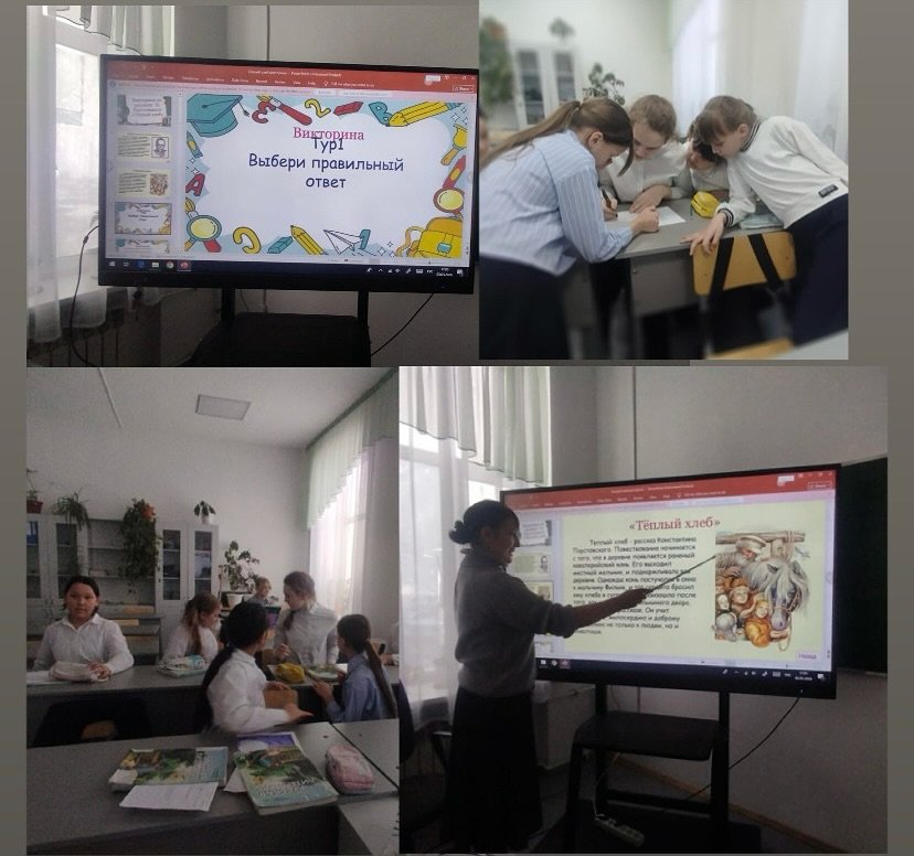 5 «Б» сыныбында К. Паустовскийдің «Жылы нан» атты әңгімесі бойынша викторина өткізілді. Викторина барысында оқушылар 2 командаға бөлініп, сұрақтарға жауап берді, кроссворд, ребустарды анықтады, сондай-ақ кейіпкерді оның сипаттамасы бойынша анықтады. Балалар...