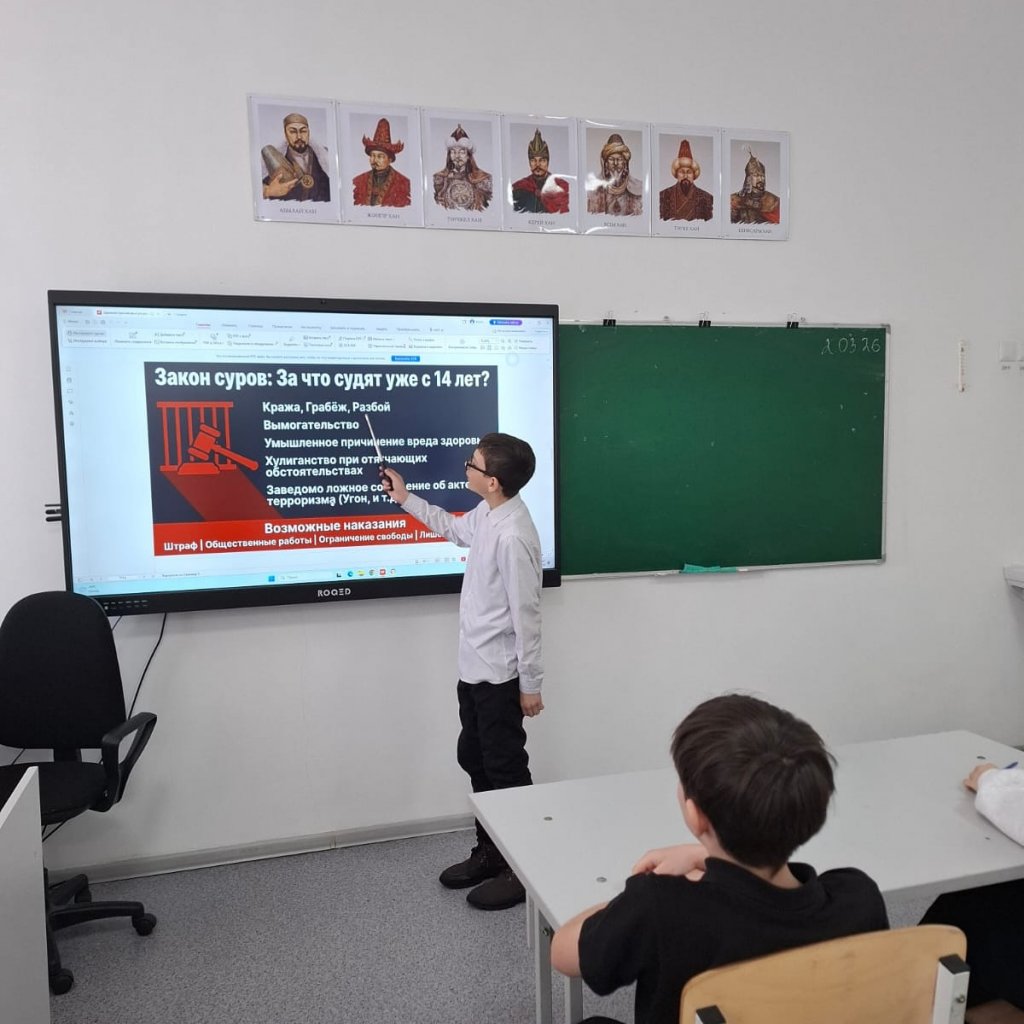 10 наурызда 7-сыныпта «Жасөспірімдердің құқықтық жауапкершілігі» тақырыбында дөңгелек үстел өткізілді. Іс-шараның мақсаты - оқушылардың құқықтық сауаттылығын қалыптастыру, өздерінің әрекеттері үшін жауапкершілікті арттыру және кәмелетке толмағандар арасында...