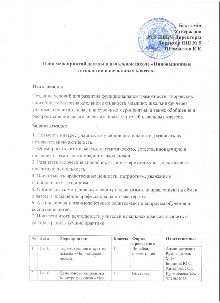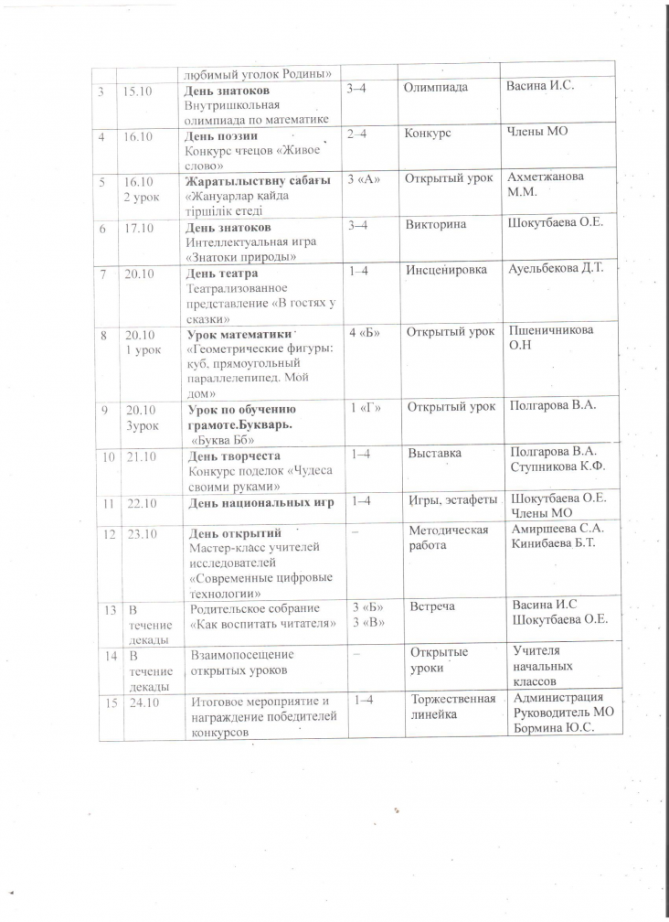 Бастауыш мектептегі онкүндік іс-шаралар жоспары