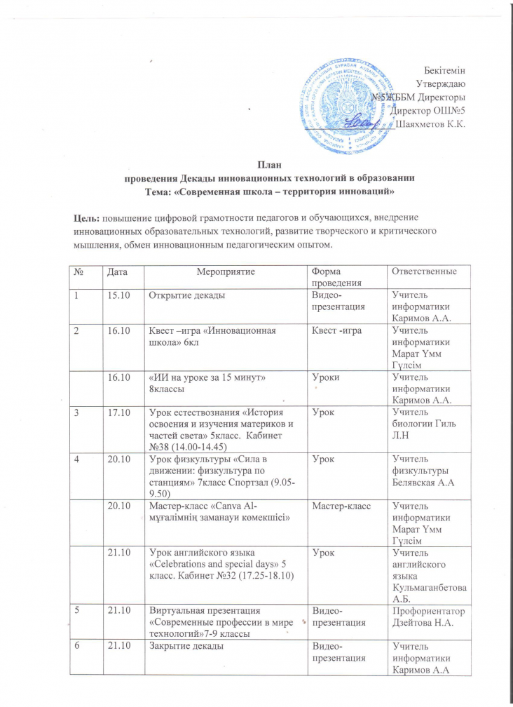 Инновациялық технологиялар онкүндігін өткізу жоспары