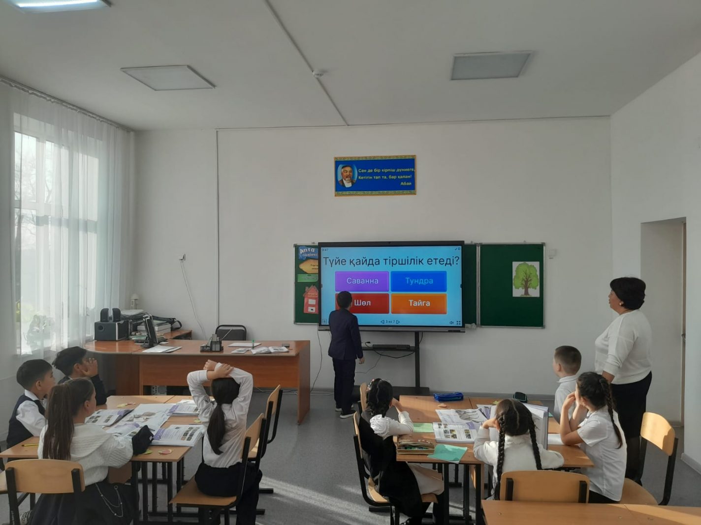 Бастауыш сыныптар онкүндігі аясында 3"А" сыныпта жаратылыстану пәнінен "Жануарлар қайда тіршілік етеді?" тақырыбы бойынша ашық сабағы өтті. Сабақта оқушыларға жануарлар қайда тіршілік ететіні мағлұмат берілді. Тақырыпқа байланысты ойындар ойнатылып, әртүрлі тапсырмалар орындады. Сабақ қызықты әрі тартымды өтті. Сынып жетекшісі: Ахметжанова М.М.