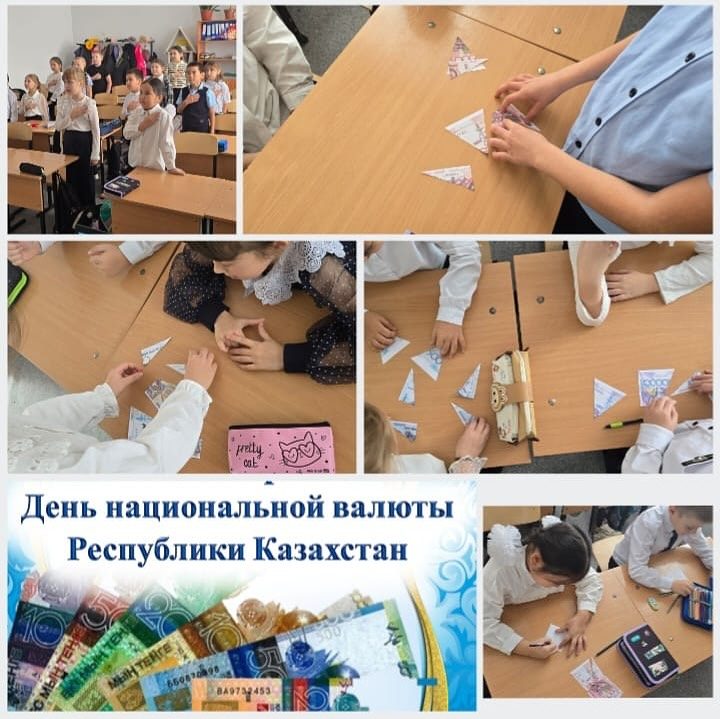 Мектепте барлық сыныптарда "Теңге-тәуелсіздік тірегі"тақырыбында сынып сағаты өтті Мақсаты: оқушылардың ҚР Ұлттық валютасы туралы ой-өрісін байыту. Патриотизмді қалыптастыру. Қазақ халқының мәдениетіне, тарихи өткеніне және мұрасына деген сүйіспеншілікке, құрмет пен қызығушылыққа тәрбиелеу. Сынып сағатында балалар викторина сұрақтарына жауап беріп, басқатырғыштар жинады.