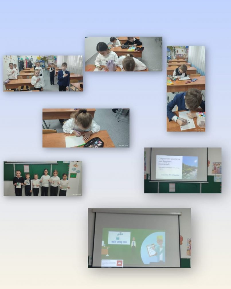 3 Г және 2 Г сыныптарда "Энергияны үнемдеу - экологияны қорғау"тақырыбында сынып сағаты өтті. Іс-шара басында балалар ҚР әнұранын салтанатты түрде орындады. Содан кейін балалар сұрақтарға жауап беріп, табиғатқа байланысты суреттер салды. Сынып сағатының соңында балалар танымдық бейнеролик көрді.