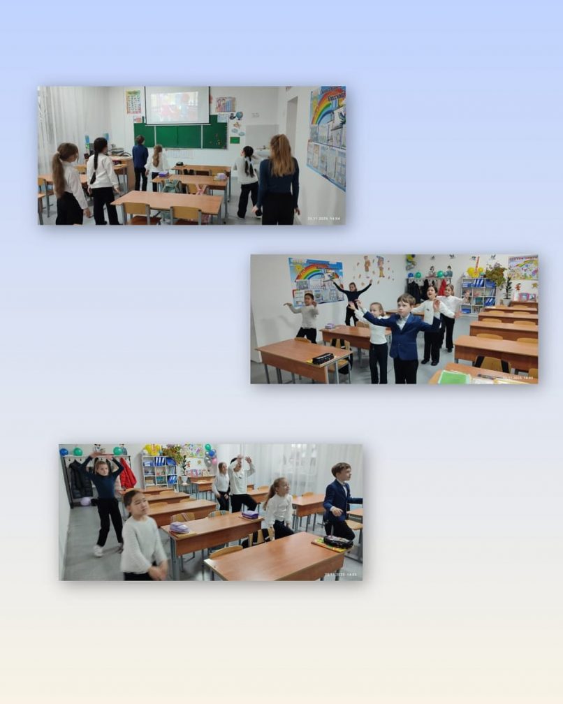 25 қарашада 2г және 3Г сыныптарда оқушылар үшін жаттығулар өткізілді. Балалар жаттығуларды қуана орындады, музыкаға жаттығулар жасады.