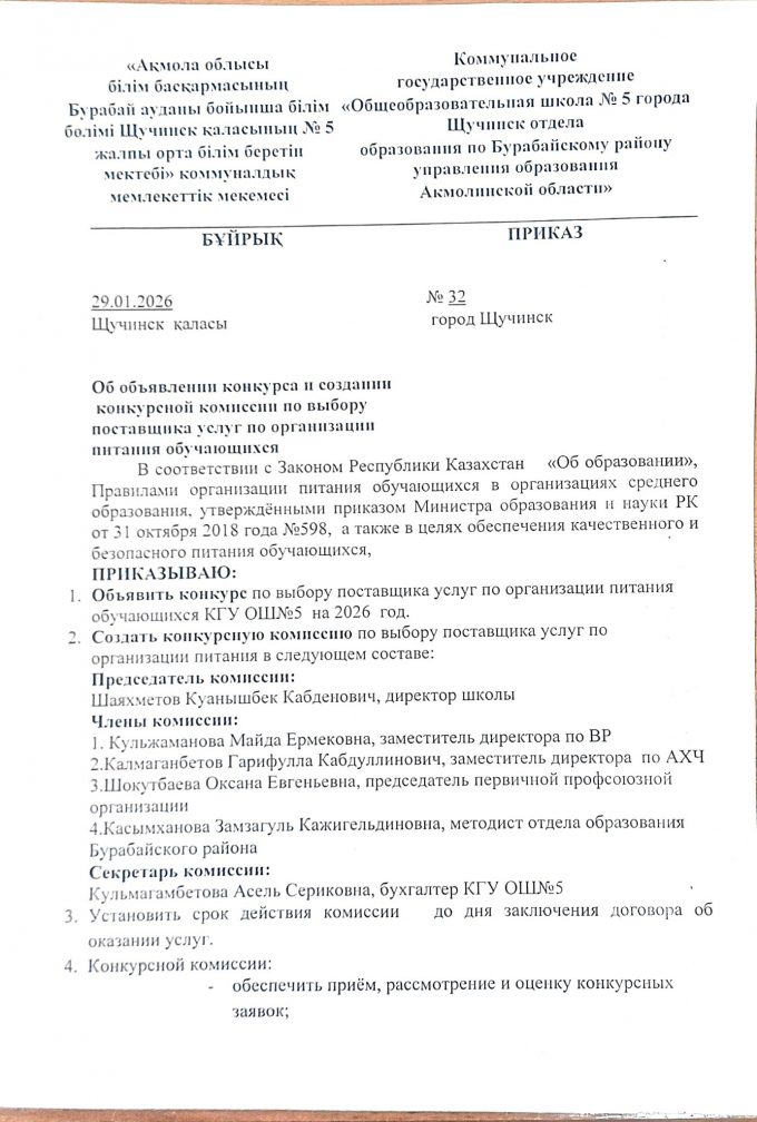Коммунальное государственное учреждение "Общеобразовательная школа №5 города Щучинск отдела образования по Бурабайскому району управления образования Акмолинской области"